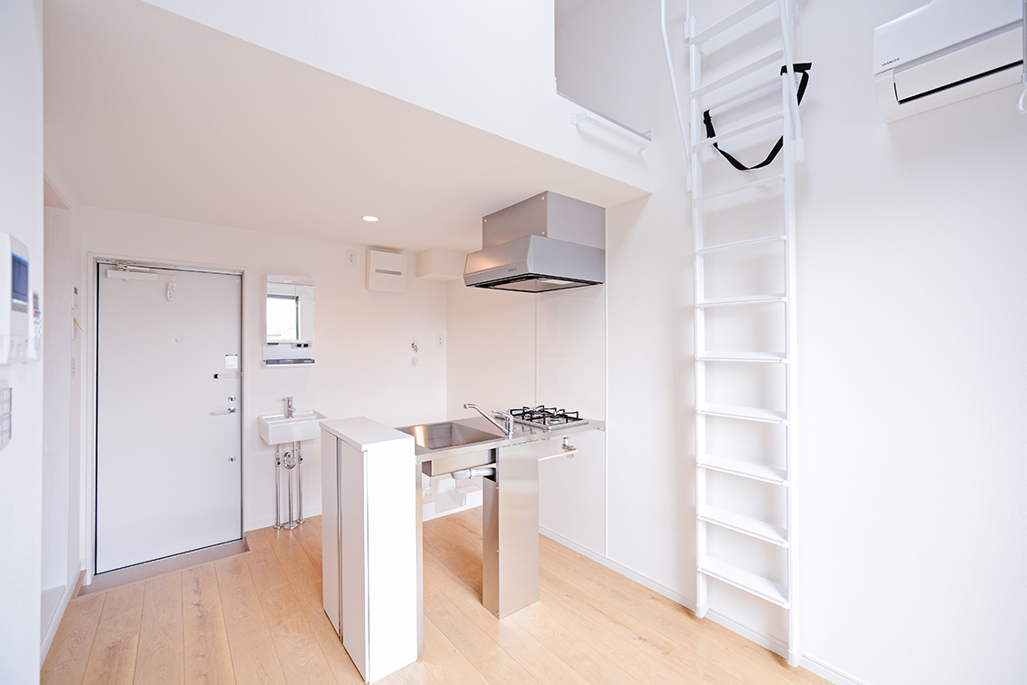 白を基調にしたスタイリッシュなデザインとそれぞれ使いやすさや都会感を感じられる 住宅設備。そこに遊びココロのある空間デザインをプラス。 見る人が入居したいという意欲に心をくすぐられるように作られた、新感覚のアパートデザインです。